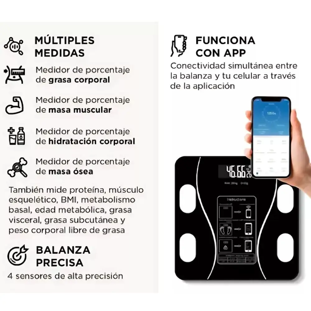 -Con conexión bluetooth, a través de aplicación para celular. Carga tus datos de inicio y así poder llevar un control sobre el registro a precisar.