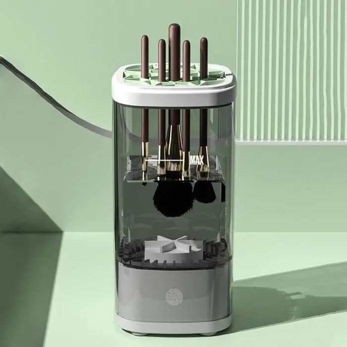 Nuestro limpiador de brochas de maquillaje eléctrico utiliza tecnología de limpieza avanzada para limpiar a fondo la mayoría de los tipos de cepillos de maquillaje en poco tiempo. Flujo de agua adecuado y diseño de cabezal de cepillo giratorio, el limpiador penetra profundamente en las cerdas para eliminar residuos cosméticos y bacterias difíciles de limpiar para garantizar la higiene y seguridad de tus cepillos.